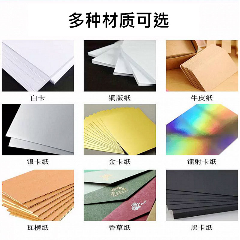 印刷紙張:銅版紙、雙膠紙、啞粉紙、珠光紙、其他藝術(shù)紙(藝術(shù)紙種類較多我們可以免費提供紙樣供您選擇)
